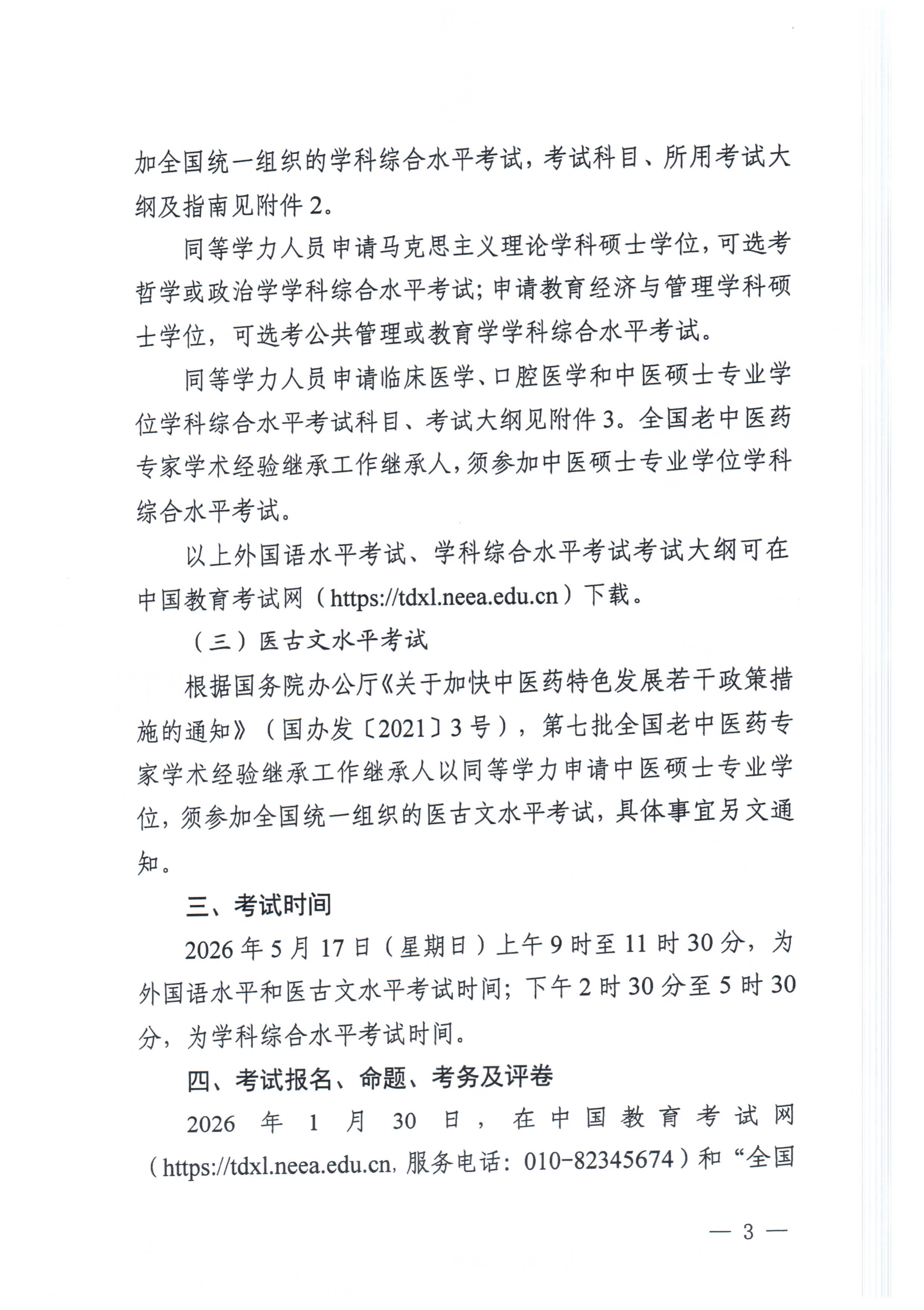 学位办【2026】1号-关于做好2026年同等学力人员申请硕士学位外国语水平和学科综合水平全国统一考试工作的通知